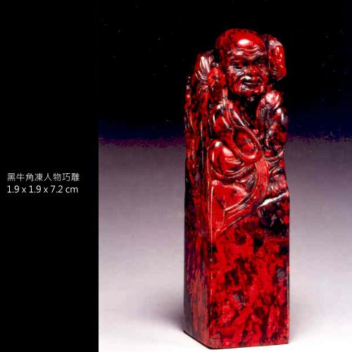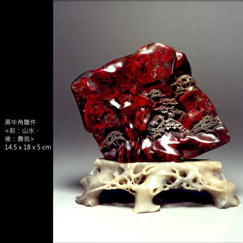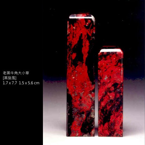 四、牛角地:有黑、灰兩色,質地半透明且細緻,而在黑牛角中以「黑旋風」最為難得。亦可稱為昌化雞血石中之絕品種。