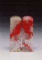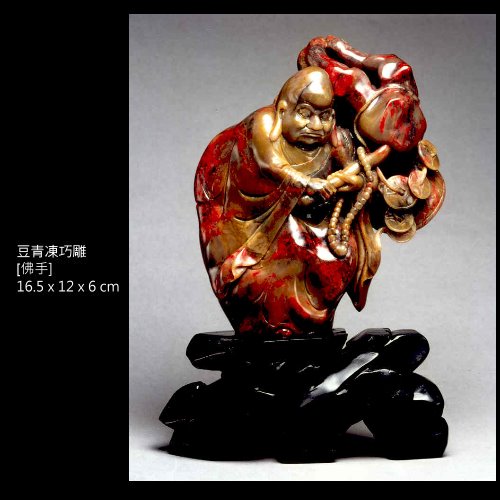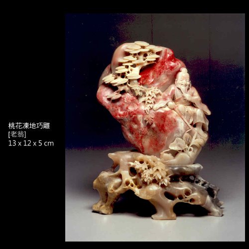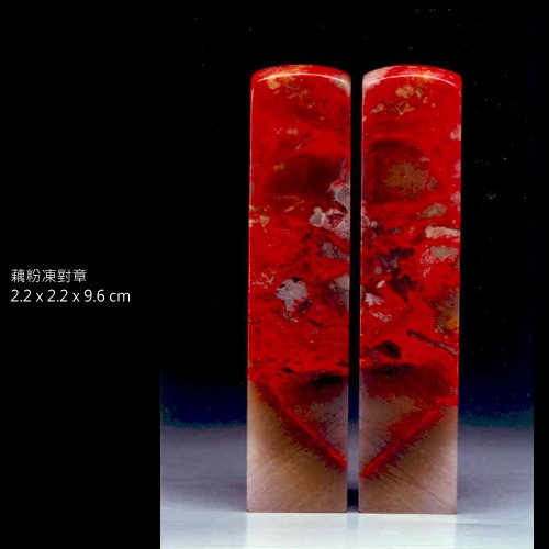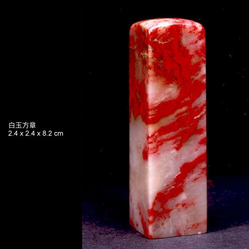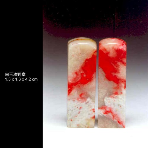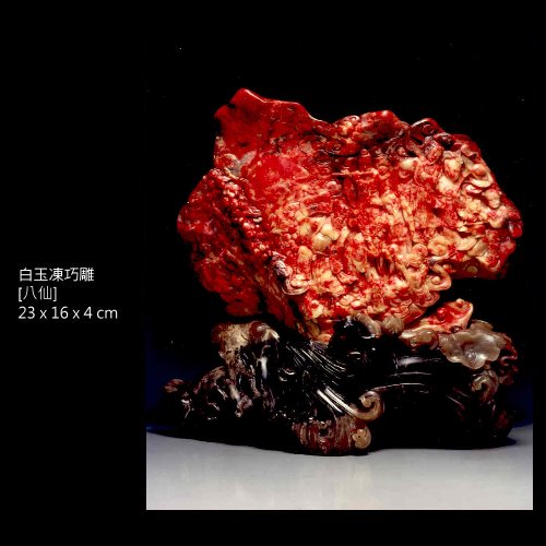 三、白玉地:為月白色,無雜質雜色,雞血紅斑,質細膩,半透明或微透明體,其麗妍可知,為雞血石中之珍品種。
