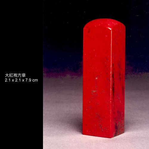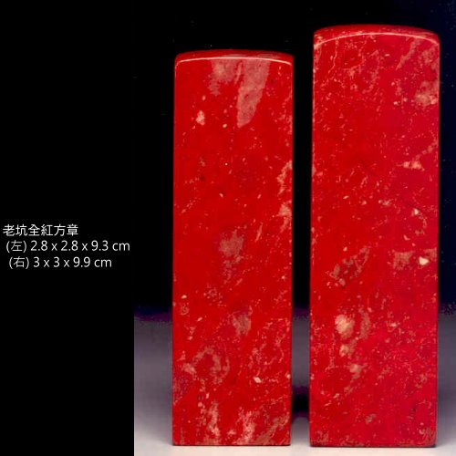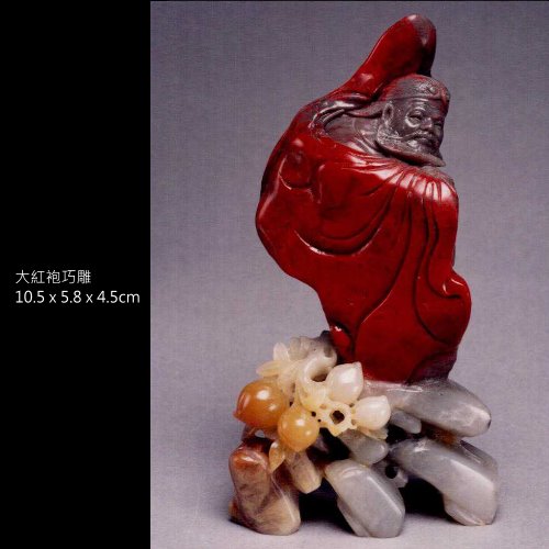 十一、大紅袍雞血石:用肉眼觀察幾乎全紅,整體含血量85%以上者。若為凍地,透明或半透明狀,紅斑或紅血塊透明者俗稱「雞血凍」。是所有雞血石中最頂級神種。